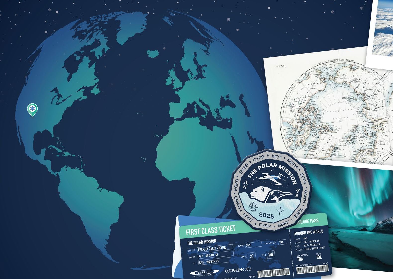Polar circumnavigation is complete navigation around Earth through both the North Pole and the South Pole. The Rockwell Polar Flight was the first to complete a Polar Circumnavigation in 1965 that spanned more than 62 days. The Classic Lear Jet Foundation is planning their own Polar Mission from April 30 - May 3, 2025 as a fundraiser for their mission of restoring to flying condition the first Learjet delivered to a customer in 1964. Global Jetcare, an air ambulance service based in Florida, is handling all flight arrangements and donating their Learjet and crew of four in support of the Foundation’s work.